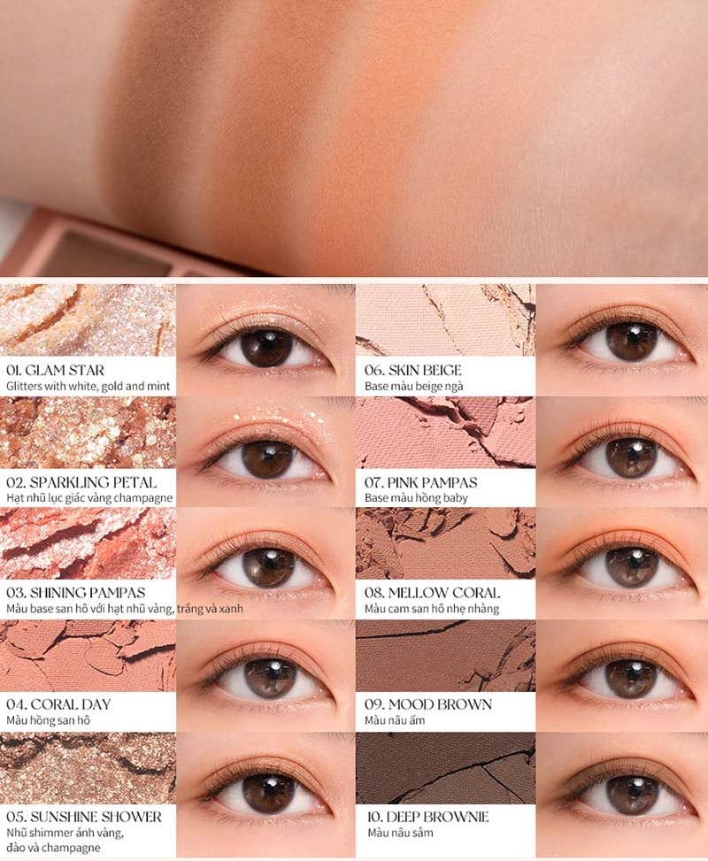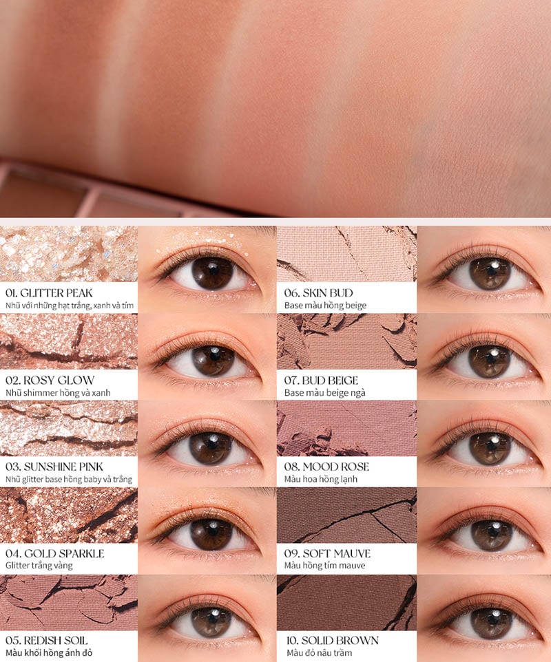 2. Bảng Phấn Mắt 10 ô Romand Better Than Eye Palette có tone màu sau: