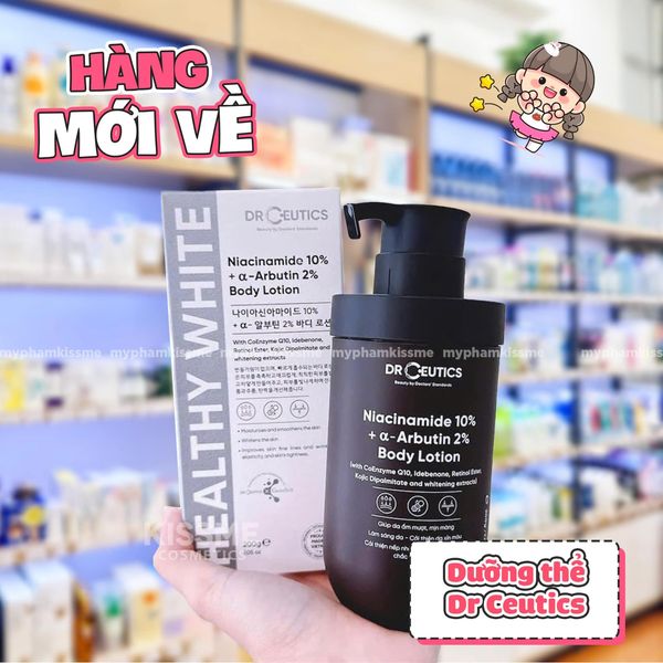 Sữa Dưỡng Thể Trắng Da DrCeutics Niacinamide 10%+ α- Arbutin 2% Body Lotion với thành phần từ thiên nhiên kết hợp với Niacinamide 10% + α- Arbutin 2% giúp mang lại cảm giác khô thoáng cho người sử dụng, không gây nhờn rít da, đồng thời giúp làn da trở nên mịn màng, cải thiện tình trạng xỉn màu da, giúp tăng độ đàn hồi của da.