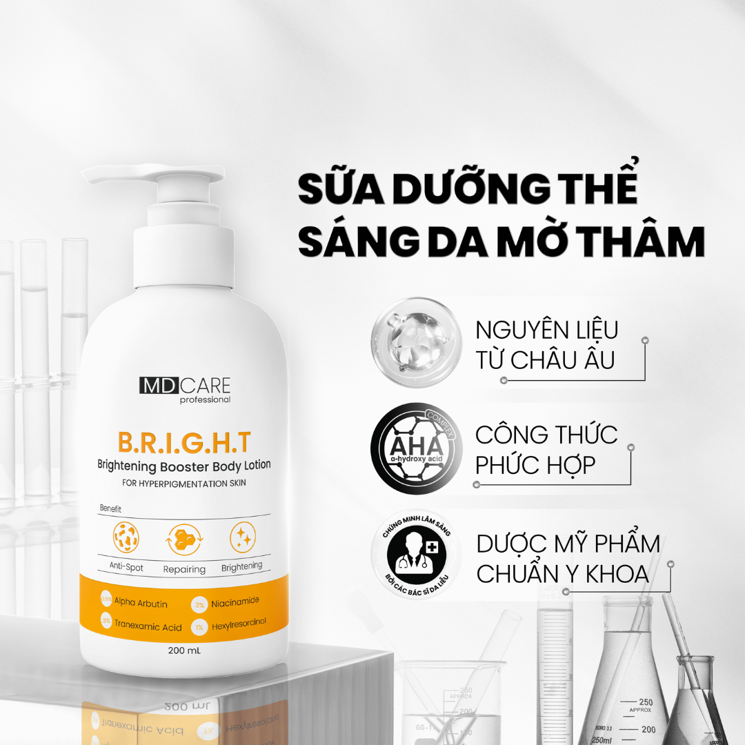 Sữa dưỡng thể MDcare Brightening Booster Body Lotion – Giải pháp dưỡng sáng & mờ thâm toàn thân