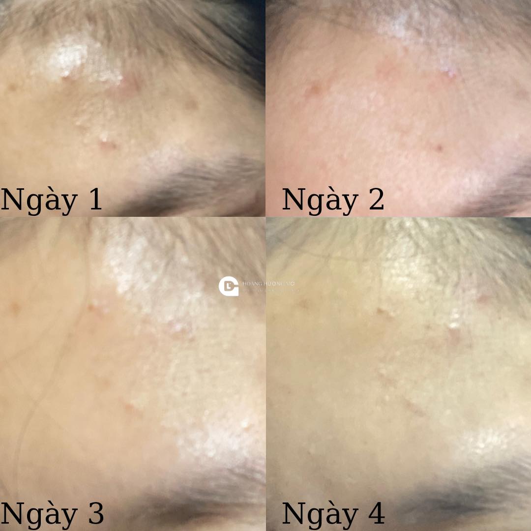 - Sau khi làm sạch da và lau khô, nôi một lớp mỏng thuốc lên nốt mụn sưng viêm mỗi ngày một lần vào buổi tối.