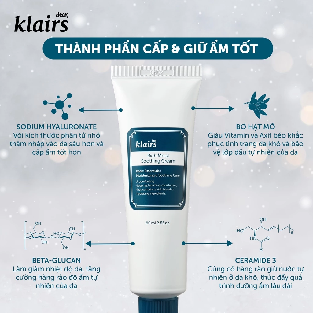 2. Công dụng Kem Dưỡng Klairs Rich Moist Soothing Cream