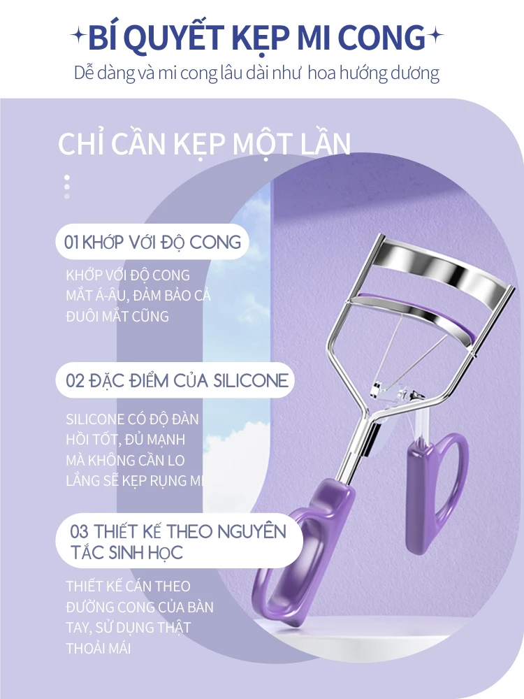 Thiết kế thông minh: Kẹp có thiết kế góc bấm rộng, vừa vặn với dáng mắt và độ cong của mắt người Châu Á, hạn chế tình trạng bấm vào mí. Hình dáng dễ thương, nhỏ gọn, dễ mang theo bên người