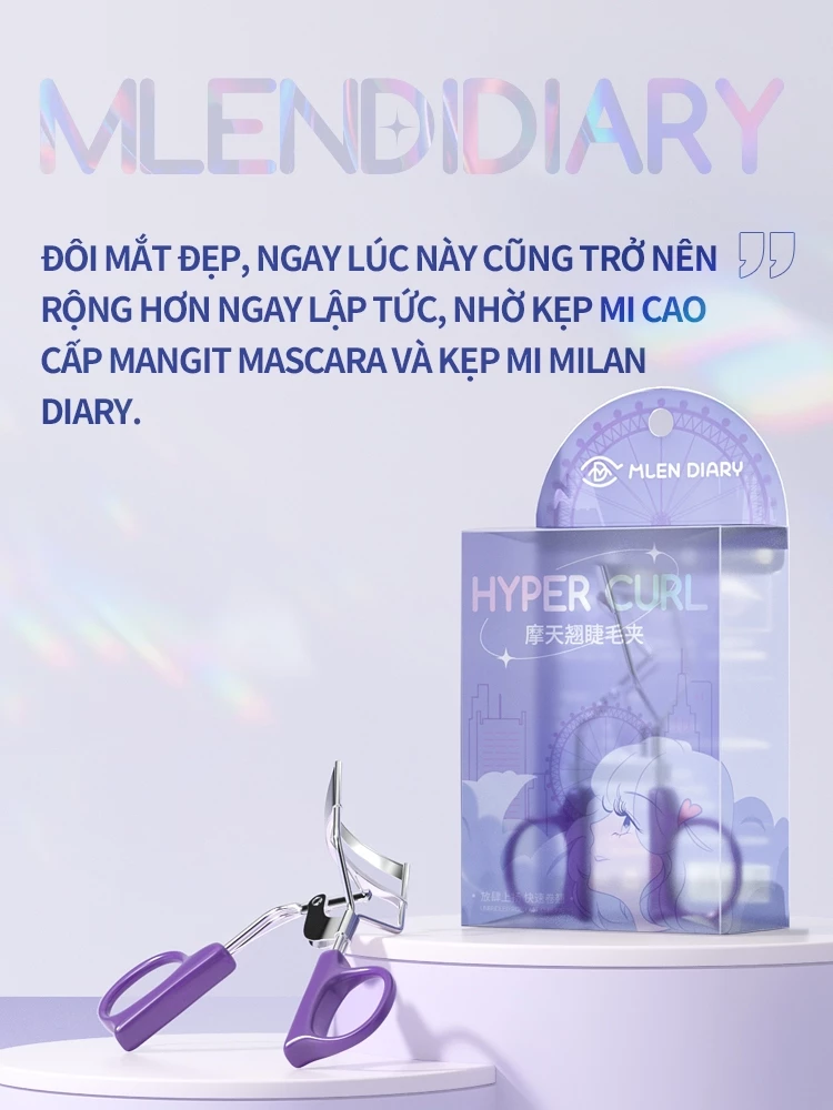 Kẹp Bấm Mi Mlen Diary Hyper Curllà sản phẩm kẹp mi từ thương hiệu đình đám Mlen Diary. Hình dạng nhỏ gọn, xinh xắn giúp làm cong mi, giữ nếp lâu cho hàng mi cong quyến rũ mọi lúc mọi nơi. Thiết kế tối ưu giúp bấm mi dễ dàng và an toàn, đồng thời không làm tổn hại đến lông mi tự nhiên