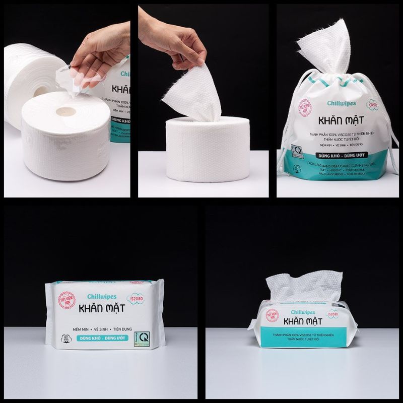 Khăn mặt khô Chillwipes là một giải pháp tiện lợi và đa năng cho việc vệ sinh cá nhân và gia đình. Khăn có chất liệu vải không dệt, được làm từ 100% xơ Viscose từ thiên nhiên, đảm bảo an toàn và không gây kích ứng cho da.