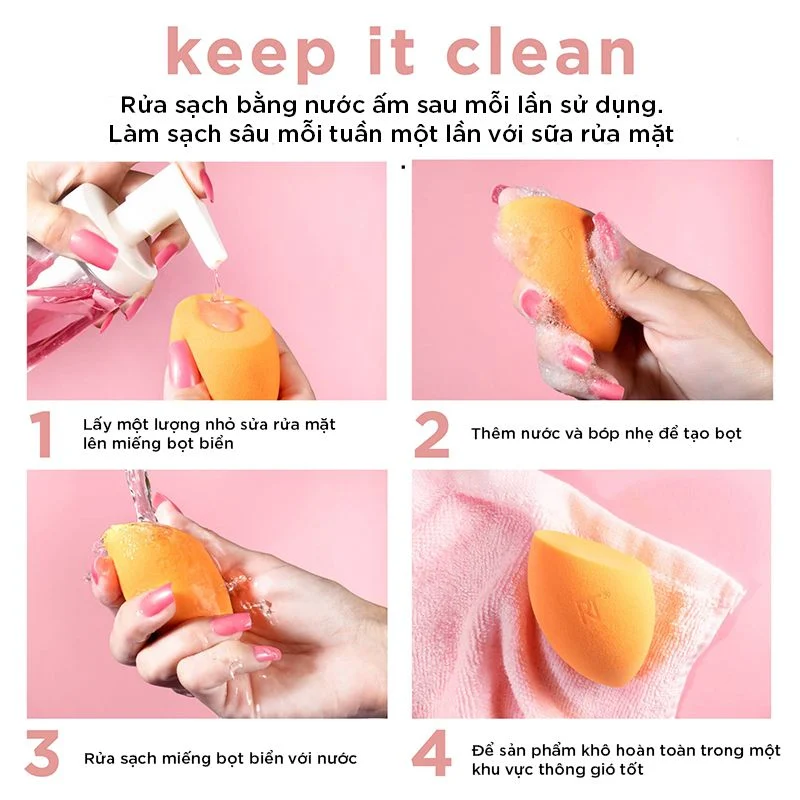 - Cấu trúc của miếng sponge cực mềm mịn, không hút kem nhiều và không tạo vệt khi blend.