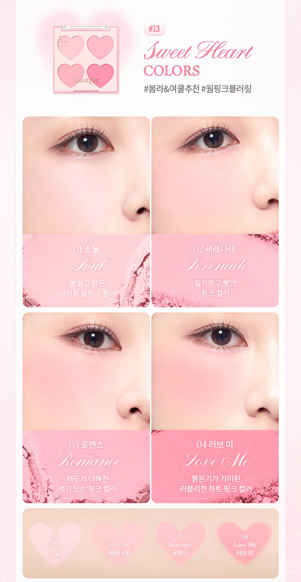 Tham khảo thêm về các ảnh Phấn Má Hồng 4 Ô Dasique Sweet Heart Collection Blending Mood Cheek tại fanpage để thêm thông tin chi tiết về sản phẩm