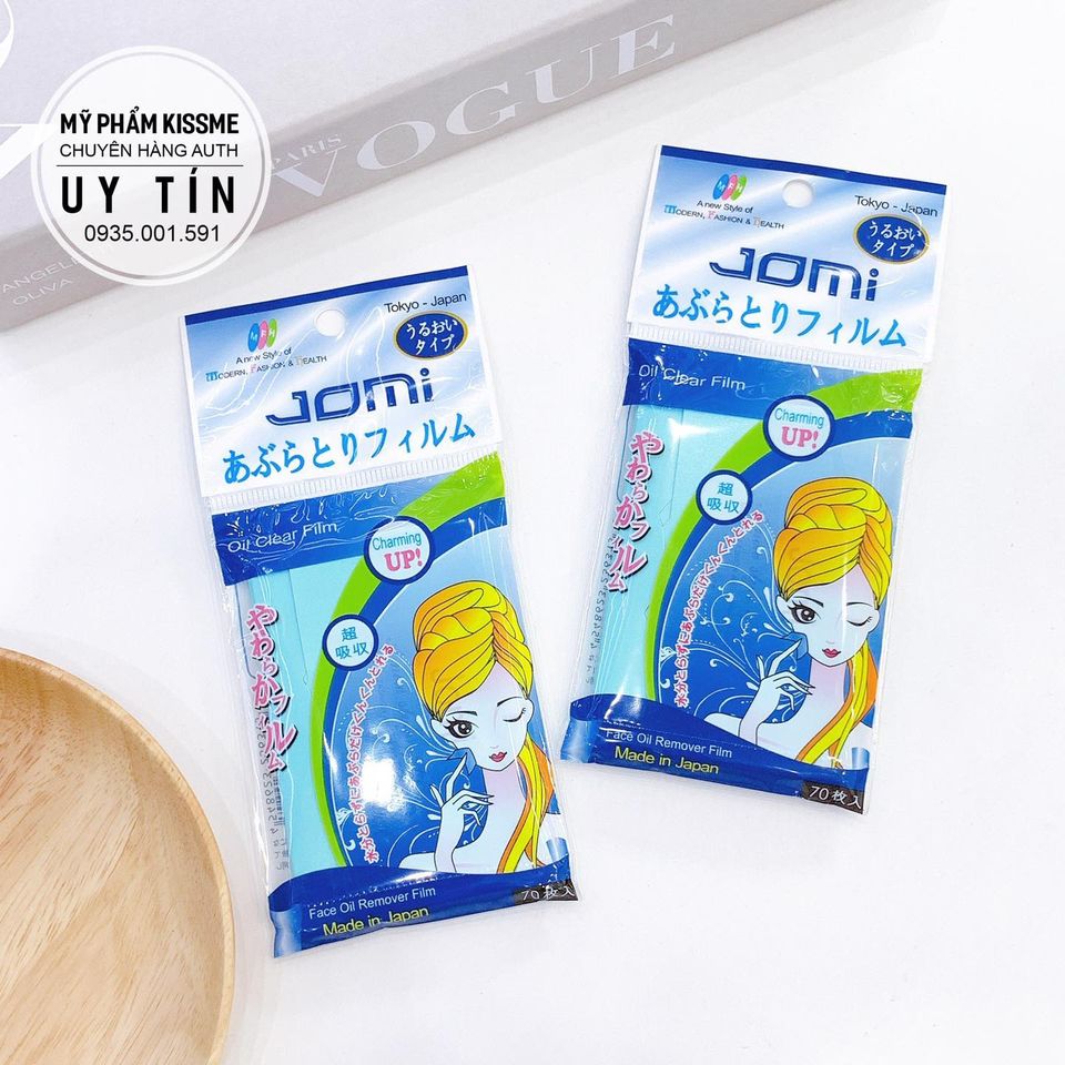 - Jomi Oil Clear Film có khả năng siêu thấm hút dầu thừa trên da mặt, giúp loại đi nét bóng nhờn, làm thông thoáng bề mặt da, giảm thiểu sự phát triển của mụn và bảo vệ trang điểm, Phim thấm dầu Jomi được coi là người bạn đồng hành, mọi lúc, mọi nơi không những của chị em mà với cả cánh mày râu nữa. Theo thống kê, có đến 80% phụ nữ văn phòng, nghệ sỹ biểu diễn, hay giới teen tại Nhật Bản và Hàn Quốc luôn mang theo Phim thấm dầu Jomi bên mình.