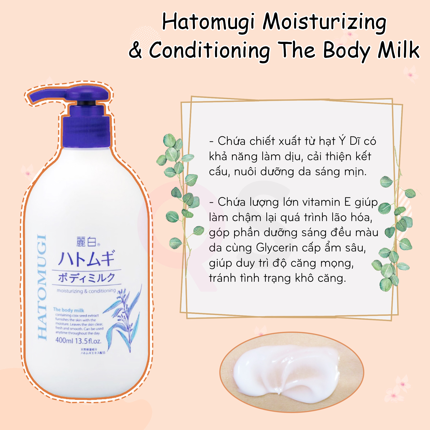 Sữa dưỡng thể dưỡng ẩm, làm sáng da 𝗛𝗮𝘁𝗼𝗺𝘂𝗴𝗶 𝗠𝗼𝗶𝘀𝘁𝘂𝗿𝗶𝘇𝗶𝗻𝗴 & 𝗖𝗼𝗻𝗱𝗶𝘁𝗶𝗼𝗻𝗶𝗻𝗴 𝗧𝗵𝗲 𝗕𝗼𝗱𝘆 𝗠𝗶𝗹𝗸